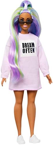 Barbie Fashionistas Doll With Long Rainbow Hair Wearing Sweatshirt Dress And Accessories For 3 To 8 Year Olds Price In Uae Amazon Uae Kanbkam